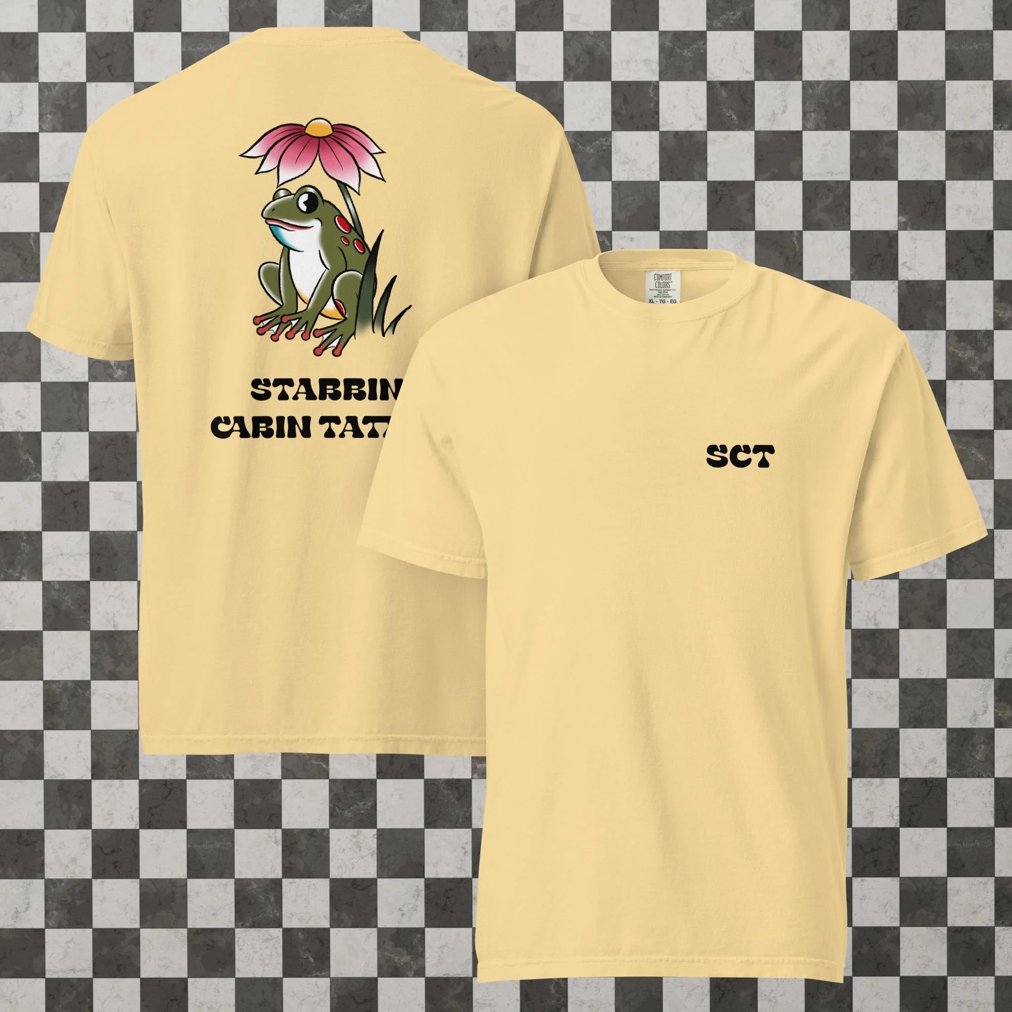 Shop › Froggy Tee Image 1 of 8 Image 2 of 8 Image 3 of 8 Image 4 of 8 Image 5 of 8 Image 6 of 8 Image 7 of 8 Image 8 of 8 Froggy Tee from $32.00 Comfort Colors Tee Color: Select Color Brick Moss Yam Ice Blue Blossom Butter Chambray White Size: Select Size S M L XL 2XL 3XL 4XL Add To Cart Added! Comfort Colors Tee